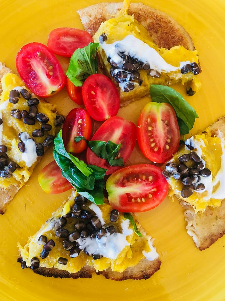 דוסה במילוי דלעת ערמונים אפויה ומעוכה עם שעועית אורד-דל ויוגורט