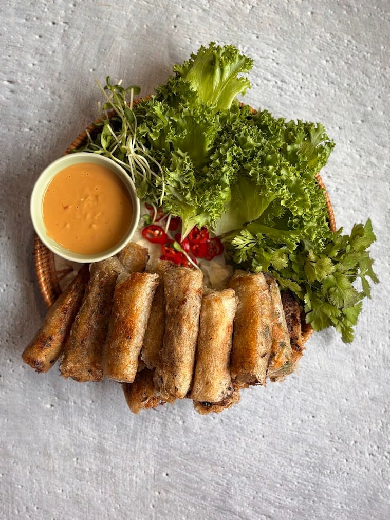 - לפני ההגשה, מחממים מחבת רחבה נון סטיק, שמים 3 כפות שמן קוקוס ומטגנים את הרולים כ-2 דק' מכל צד, ודקה מהצדדים, עד להשחמה יפה. מגישים את הנאמס בצלחת יפה עם עלי חסה, כוסברה, נבטי חמניה, פלפל צ'ילי והמטבל שלנו. עכשיו רק נשאר להרכיב לכם ביס מושלם קראנצ'י ומענג.