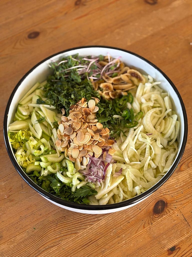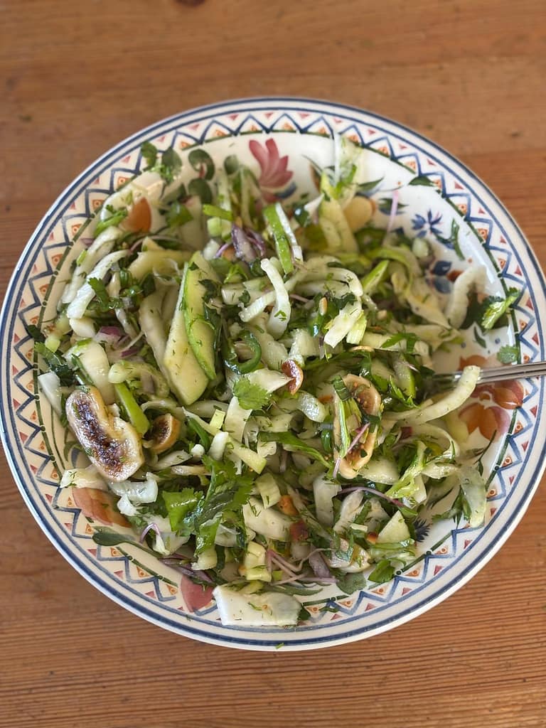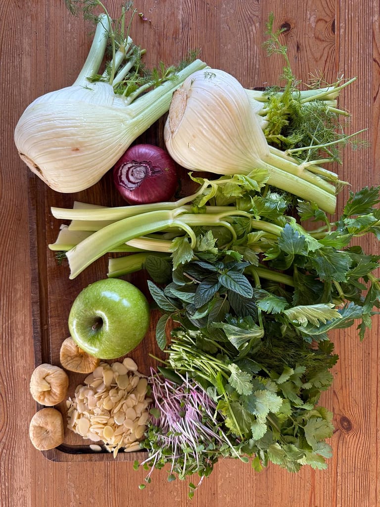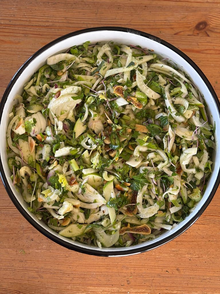 סלט רענן וחגיגי, מתפצח בפה, עשיר בעשבי תיבול ובגרעינים שכיף לאכול. התאנים, התפוח והדבש נותנים לו מתיקות עדינה ומאוזנת.