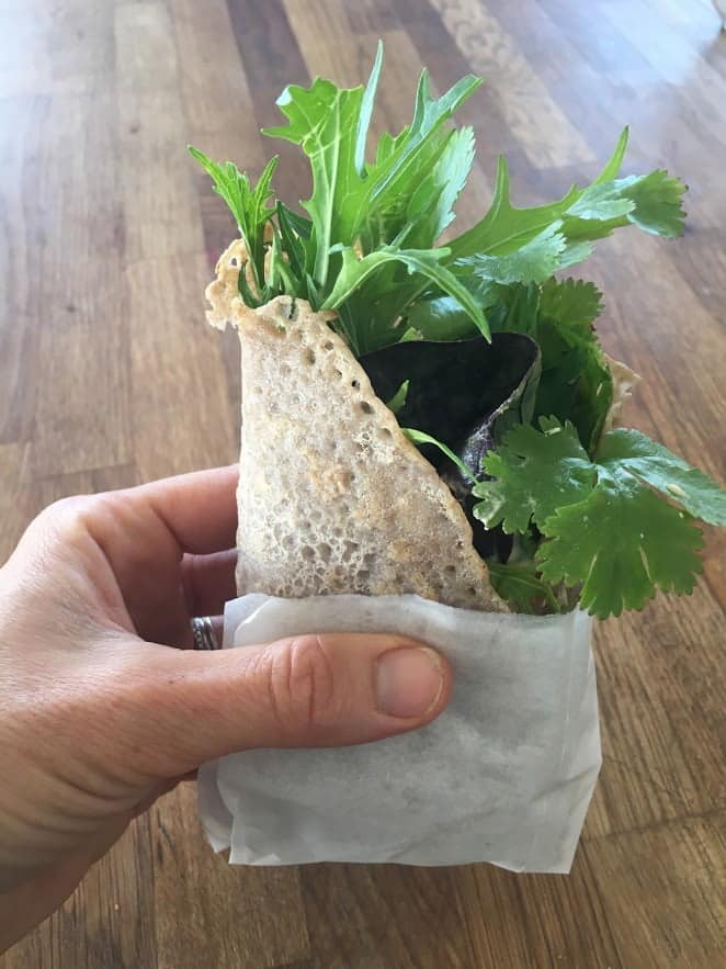 טורטיה ללא גלוטן שמככבת בסדנאות ניקוי רעלים שאני מנחה בחברות. היתרון שניתן להכין את הבלילה בסוף שבוע ולשמור אותה במקרר למשך 3 ימים, וכל יום להכין טורטיות חמות במחבת. או לחילופין, להכין את כל הטורטיות בסוף שבוע (כ10 טורטיות) ולשמור בקירור או במקפיא, עם נייר אפיה מפריד ביניהם. לכוסמת הירוקה אין טעם וריח חזקים כמו לכוסמת החומה הקלויה, והערכים התזונתיים שלה נשמרים בצורה הטבעית הלא קלויה. כוסמת אינה מכילה גלוטן והיא מקור נהדר לנוגד חמצון רוטין המסייע לבריאות כלי הדם והלב, עשירה בסיבים תזונתיים התורמים לתחושת שובע לאורך זמן ולשמירה על המשקל, מסייעת להורדת רמות הכולסטרול בדם ולחץ דם.