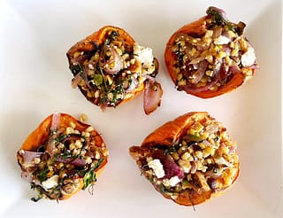 סירות דלעת צלויות במילוי סלט חיטה, פטה ודבש