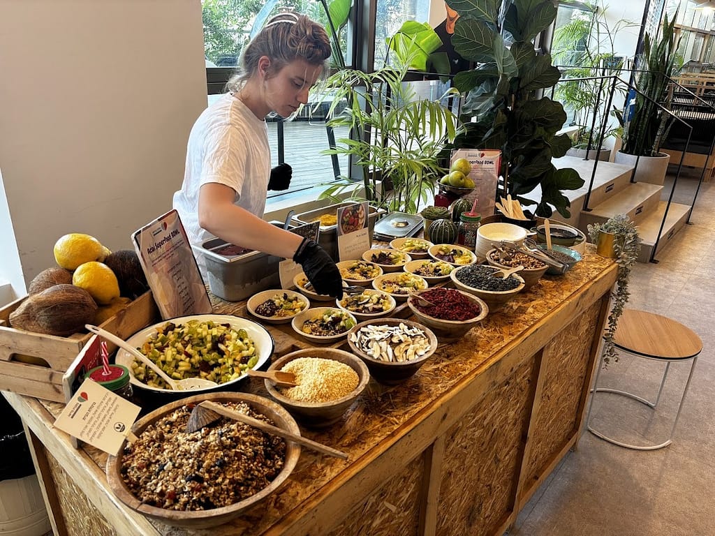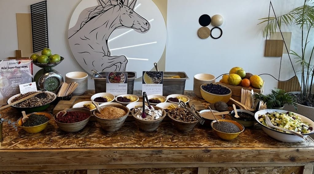 בעמדה אנחנו מגישים מגוון עשיר של תוספות איכותיות: פירות העונה, גרנולת הבית שלנו, 'סופר פודס' כמו: גוג'י בריס, רצועות קוקוס וזרעי צ'יאה, ממתיקים טבעיים של סילאן וחמאת בוטנים, אגוזים ועוד פינוקים….כך שכל עובד יכול להרכיב בדיוק את הקערה שמתאימה לו.