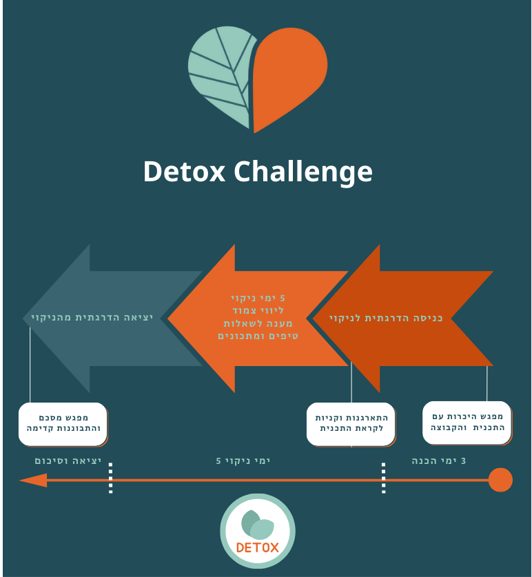 - מפגש מסכם שמכווין ליציאה הדרגתית מהניקוי ואיך ממשיכים מכאן עם תזונה מאוזנת ובריאה